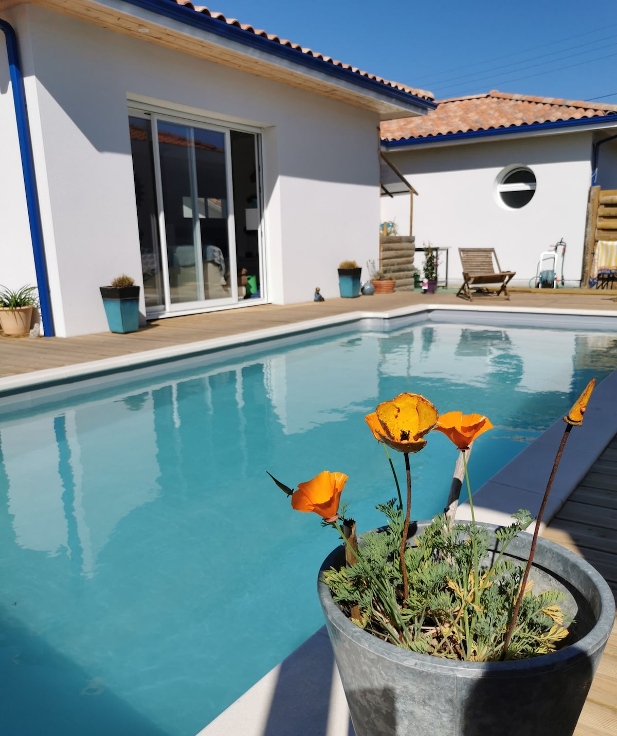 La Casa Ouvéa vous accueille dans sa maison de vacances située sur la commune de Sanguinet. Construit en 2023, ce logement moderne et paisible entouré de verdure vous offrira un séjour détente pour toute la famille : piscine chauffée, terrain de pétanque et proximité du lac de Sanguinet. La plage de Caton est accessible à vélo à seulement 4min par les chemins de Louse et de Sabas. A seulement 25min de Biscarosse Plage et la Dune du Pilat, c’est l’endroit rêvé des surfeurs et parapentistes.
