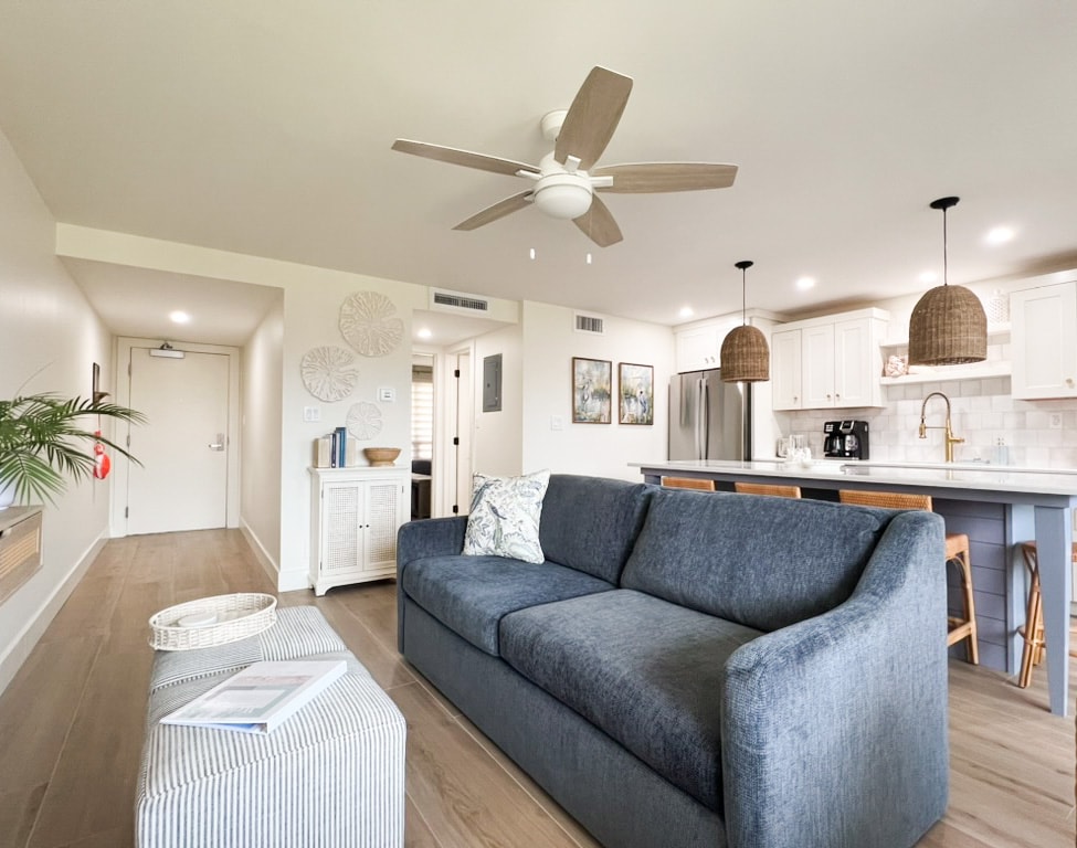 Right on Estero Blvd. in the heart of Fort Myers Beach sits this one bedroom loft! With two king beds in the sleeping area and a sleeper sofa in the living room, you can have up to 6 guests here. Enjoy the brand new bath with walk-in shower, living space with large picture window facing the Gulf, and an all new kitchen with everything you need to prepare a full meal or just a snack for the beach! Guests can expect modern and cozy decor with free WiFi and a TV in the living area.