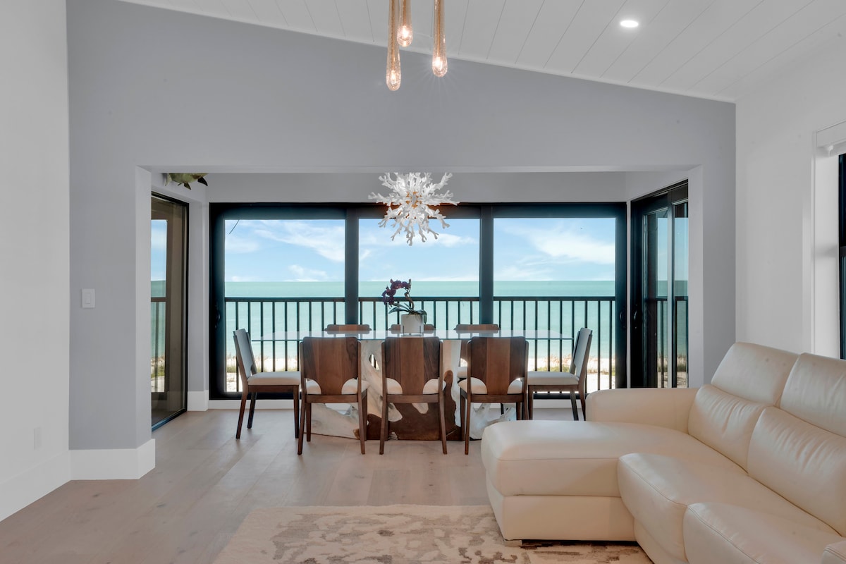 No bridges. No cars. No crowds. Stella Maris sits directly on the Gulf on North Captiva — a private barrier island reachable only by boat. Step off your deck onto white sand. Watch dolphins from your 360° rooftop deck at sunset. 3 bedrooms, each with private en-suite bath. Cathedral ceilings, gourmet kitchen, formal dining with Gulf views, stone fireplace, hot tub, and included golf cart. Dual club access — Safety Harbor Club included; optional Island Club for pools, kayaks, bikes, and pool bar.