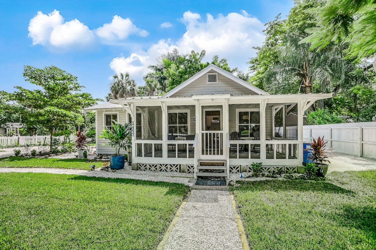 Update: In September 2022 we were affected by Hurricane Ian. We had just over 5 feet of flooding in our treasured cottage. We have worked tirelessly to put everything back together. All new tile, walls, electric, lighting, furniture, and we even improved the bathroom! Spacious tropical home with water view from our back yard lanai. Boat Dock with Cleaning Fish Station, BBQ beautiful sunsets with fish jumping in our canal. New large kitchen and one block from art galleries, restaurants and bars.