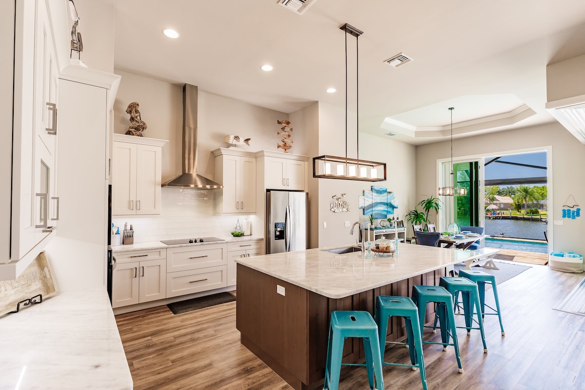 Are you looking to swim, relax outdoors, fish and take in beautiful sunsets on a wide gulf access canal? If so you will fall in love with this stunning newly constructed custom built home! The 2750 square foot home is bright & airy with two main bedroom on-suites & a separate family wing! The gourmet kitchen, dining room & great room open via large sliders to the lanai & pool w/ views of the canal in much desired SW Cape! Beach inspired villa! Large captains walk & Tiki! Check out our reviews!