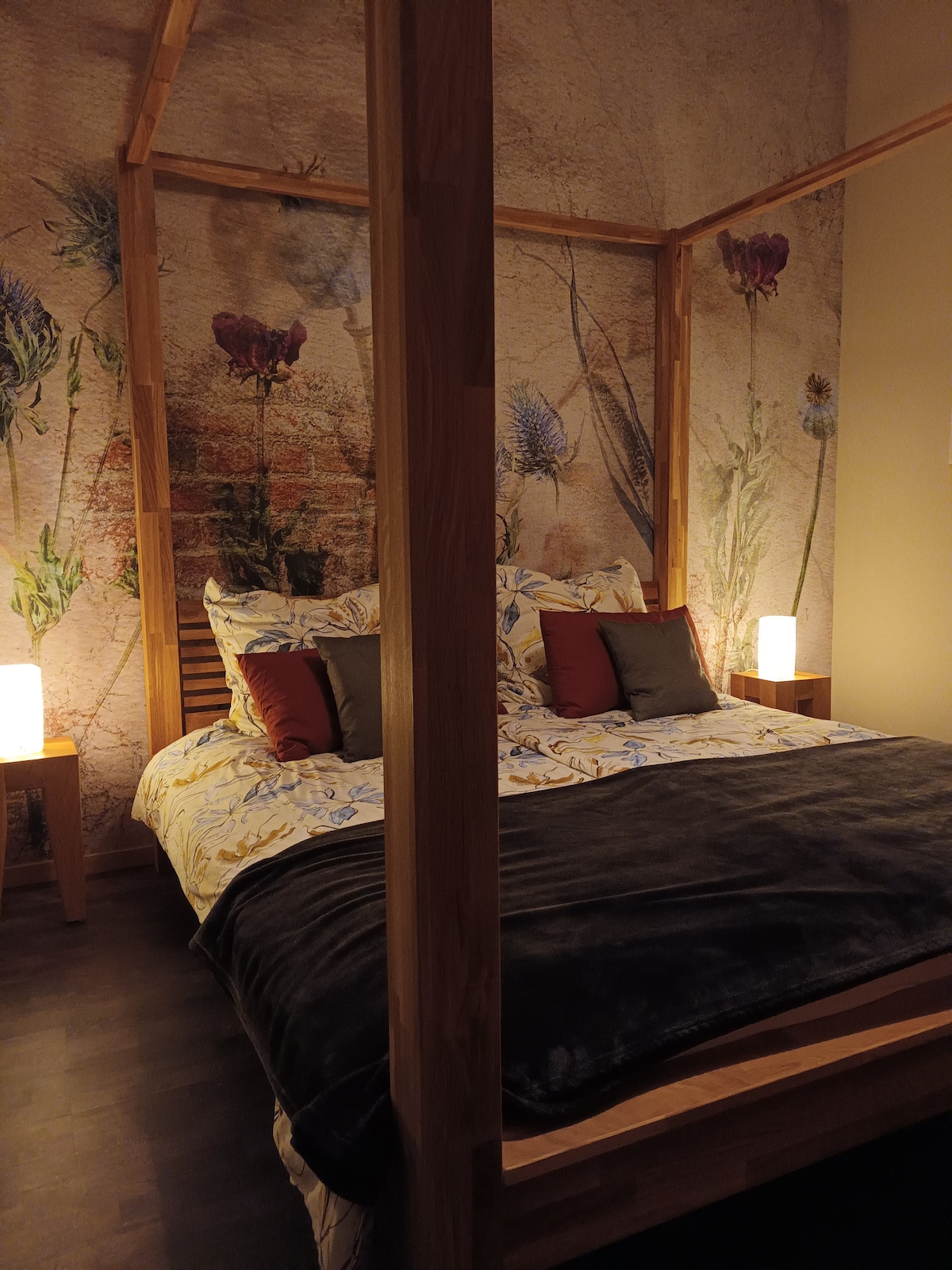 The apartment is 85 square meters big and divided into two bedrooms, a large living room with a modern kitchen, bathroom and separate toilet. The apartment is equipped with a dishwasher, microwave, satellite TV, internet connection via WLAN. On the large terrace balcony you can enjoy the evening sun. Day visitors such as hikers, cyclists or motorcyclists are of course very welcome - we will be happy to provide you with a lockable shelter.