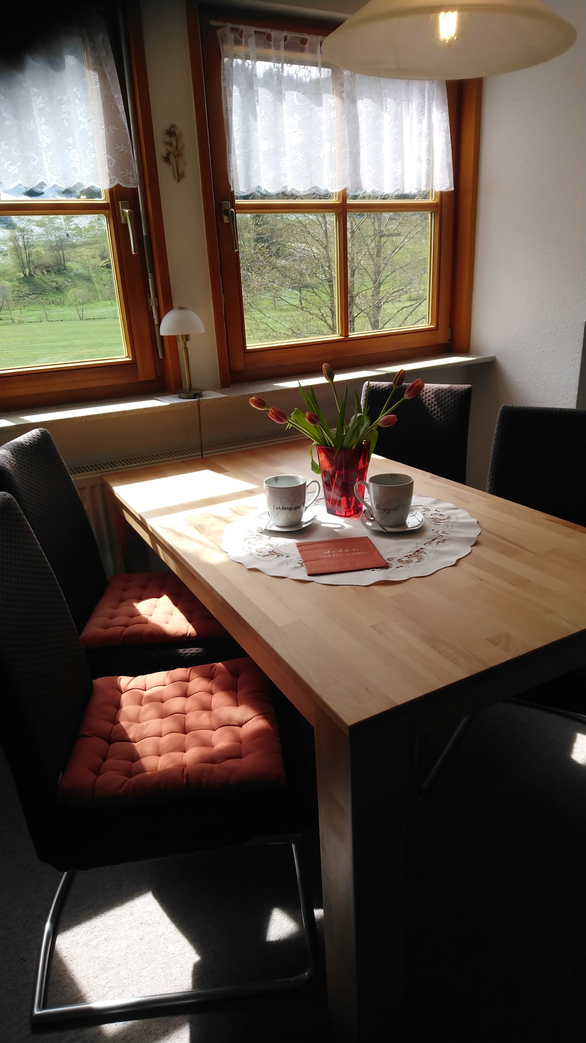 Mit viel Leidenschaft & Liebe zum Detail eingerichtete Ferienwohnung. Der ideale Ort um bei knisternder Gemütlichkeit die Seele baumeln zu lassen. Großzügig geschnittene Räume, für viel Ruhe und Privatsphäre. Das Besondere Highlight: Das Wohnzimmer verfügt über einen eigenen Kamin und vielen Büchern zum schmökern. Jeder Raum ist gefüllt mit Licht, Luft & Leichtigkeit. Von jedem Zimmer aus gelangt man direkt auf einen Balkon mit Blick in die traumhafte Natur. Wanderwege beginnen direkt am Haus.