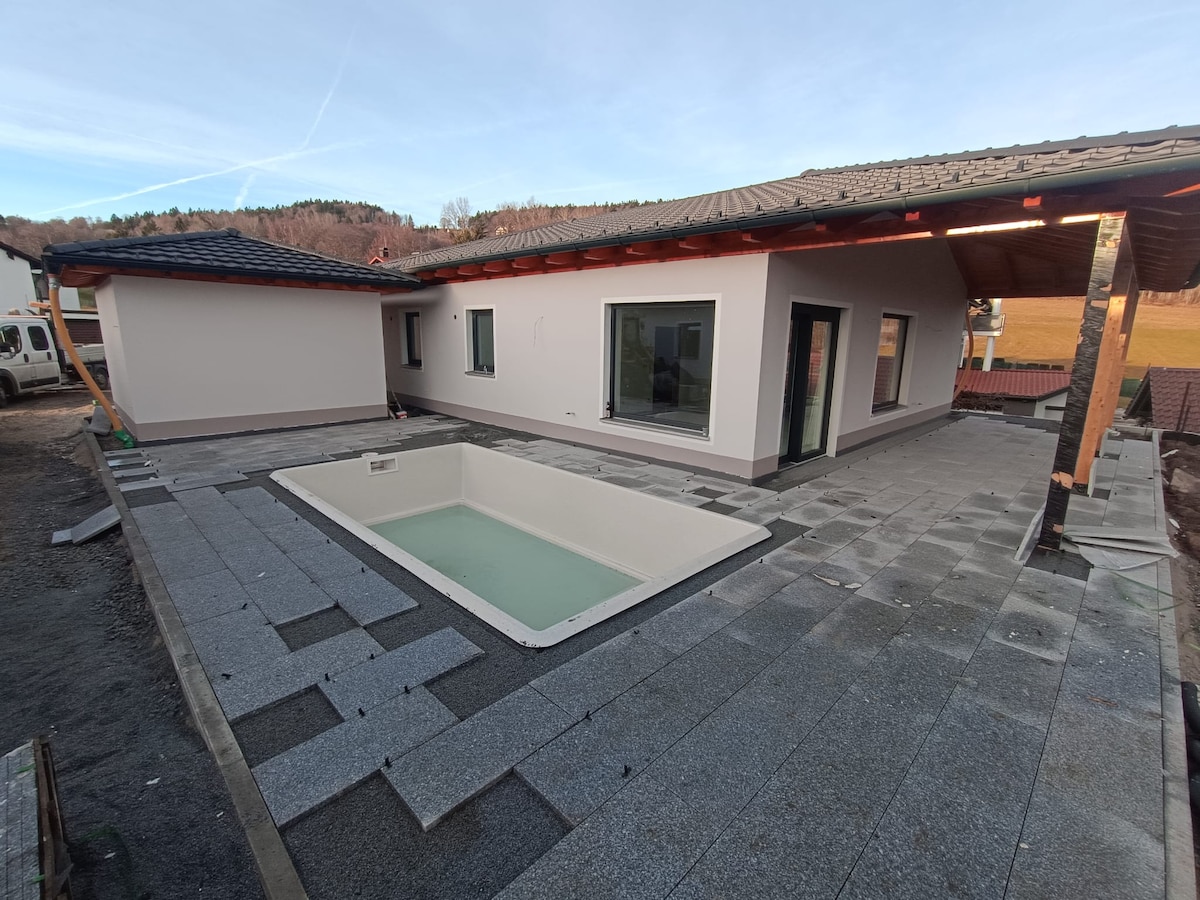 英格尔马( Englmar )带泳池和桑拿的露台。带泳池和桑拿的牡鹿