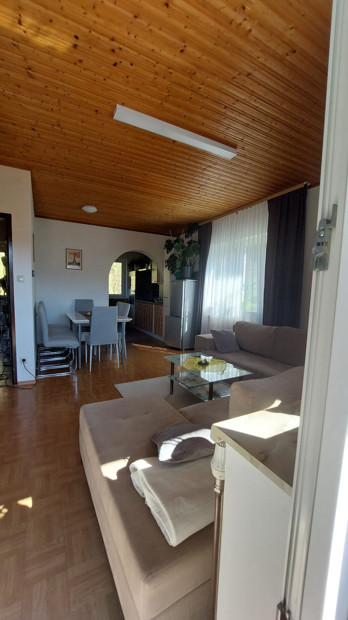 Ferienwohnung im Nebengebäude auf 2 Etagen. Eigener Eingang, Vorraum mit Garderobe und Sauna. Offenes Dachgeschoss mit Küche, Wohn- und Essbereich. In einer Nische ist ein Doppelbett(im Wohnraum) Chillen, Kamin, Fernseher! Terrasse: Sitzgruppe, Sonnenschirm, Gasgrill und Ausblick. +Schlafzimmer - Doppelbett, auf Wunsch Kinderbett. Badezimmer, Badewanne u. Dusche. Badeplatz 20m am Fluss - wenn der Wasserstand es zulässt. Loipe am Haus 15min Skigebiet, 5 See Wandern