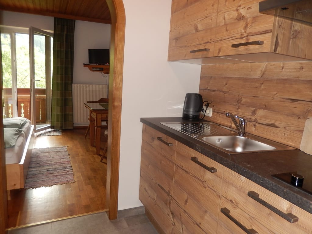 Das ist ein atemberaubender Platz für Menschen die mal wirklich Ruhe und Natur wollen, weit weg von allem anderen. Wiese, Wald, Frischluft und Berge. Hier gibt es Rehe, Hühner, Katzen und Bienen. Das Appartment ist auf einem Bauernhof, alleine mitten auf einer großen Lichtung, den ich als Biohof mit Permakultur aufbaue. Es besteht aus einem riesigen Raum mit Holzboden, neuem Holzofen und Aussicht auf die Berge, sowie einem Badezimmer, und einer Küche.