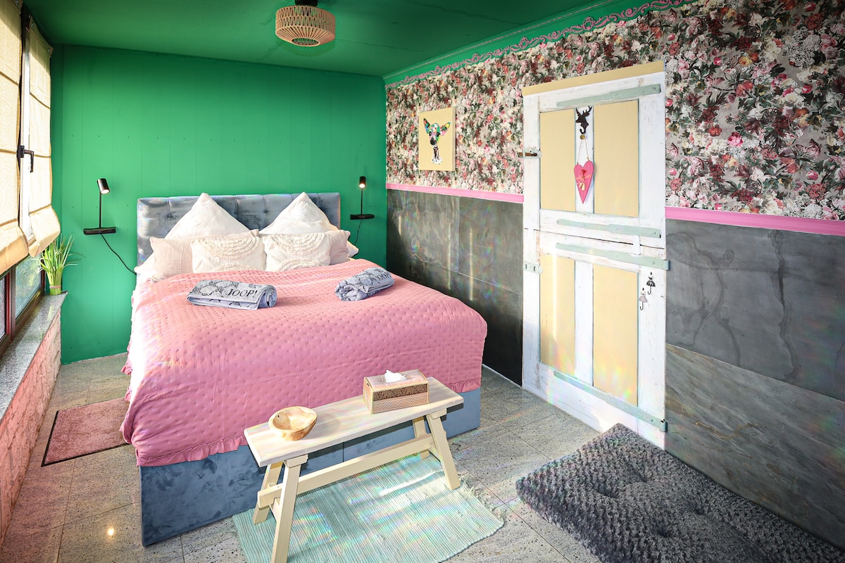 Welcome to our lovingly furnished vacation Home in the quiet outskirts of Bruchsal. The " Green Garden" vacation Home combines modern living comfort,stylish design and a particularly relaxed location - ideal vor families,Business travelers,or guests who appreciate relaxation and excellent transport Connections in equal measure. The vacation home has 1 bedroom with a king- size bed and additional sleeping options - ideal for up to 5 people.