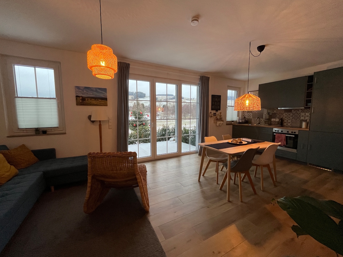 kpl eingerichtete Wohnung (3 Zimmer, Küche, Bad, 89qm) im Außenbereich mit Erdterrasse+eigenem Eingang. Seit 2022 mit Wintergarten. Umgeben von Wiesen, herrlicher Panoramablick. 10 Gehminuten zur Dorfmitte. Lebensmittelgeschäft (7-20 Uhr geöffnet, Sonntagvormittag ab 8). Jede halbe Stunde Busverbindung zum nahe gelegenen Bahnhof im Nachbarort Kirchzarten (ca. 18 km). Schwarzwald / Black Forest. Zentrale Ausgangslage für viele Unternehmungen. In der Natur gelegen, zwischen Titisee und Freiburg.