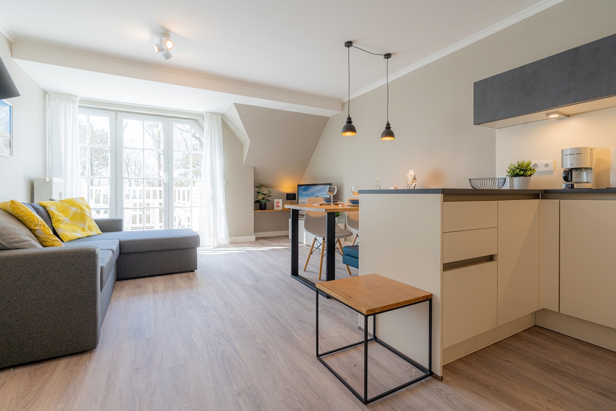 Wir vermieten ein gemütliches, kleines 1-Zimmer App. mit 25 qm. In dem Wohnraum befindet sich auch das Schrankbett (180X200). Die Küche ist mit Kühlschrank ,Spülmaschine, Kaffeemaschine, Toaster, Mikrowelle ausgestattet. Duschbad. Der großzügige Balkon lädt zum Sonnenbaden ein. Die Lage ist toll, du bist 200m vom Deich entfernt und es sind 400m zur Seebrücke und zu Gosch. Für Yoga Fans! Das Kubatzki Hotel liegt 100 m entfernt und das neue Hotel Urban Nature ebenfalls ca. 100 m entfernt.