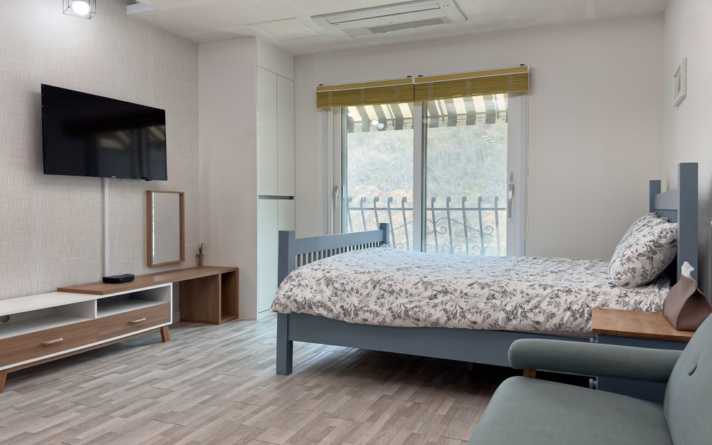 펜션형식의 민박, 2019년 전원주택 신축, 부속건물로 좌측에 다목적창고(20인석 탁자와 의자 활용 회의나 회식 가능)와 우측에 별채있음. 다만, 30평 독채중 안방 하나만은 게스트의 사용을 제한(다만, 게스트 8명 이상시 개방가능, 호스트는 아랫마을 농가주택 활용). 건물 내부 구조는 아파트 형식(힐체어 이동편리)으로 게스트가 사용할수 있는 공간은 4인실 방2, 거실(침실로 사용할 경우 8인 내외 취침할 수 있음, 응접의자, 49"TV, 에어컨, 빨래건조기, 제습기, 와이파이)1, 주방(가스렌지3구, 전자렌지3구, 6인용 식탁과 의자, 냉장고1, 김치냉장고1, 전기밥솥1, 커피폿트1, 남비 등 각종 주방용품), 화장실겸샤워실(중형세탁기1, 비데1, 세면도구 및 청소도구)2, 보일러실(각 실별 온도조절 가능)1, 창고앞에서그릴과 항아리 바베큐 가능(숯과 석쇠 등 소모품은 게스트 부담). 숙소뒷편에 대형 가스토치1, 대형스텐솥1, 중형세탁기1, 요와 이불은 게스트 인원에따라 배치.