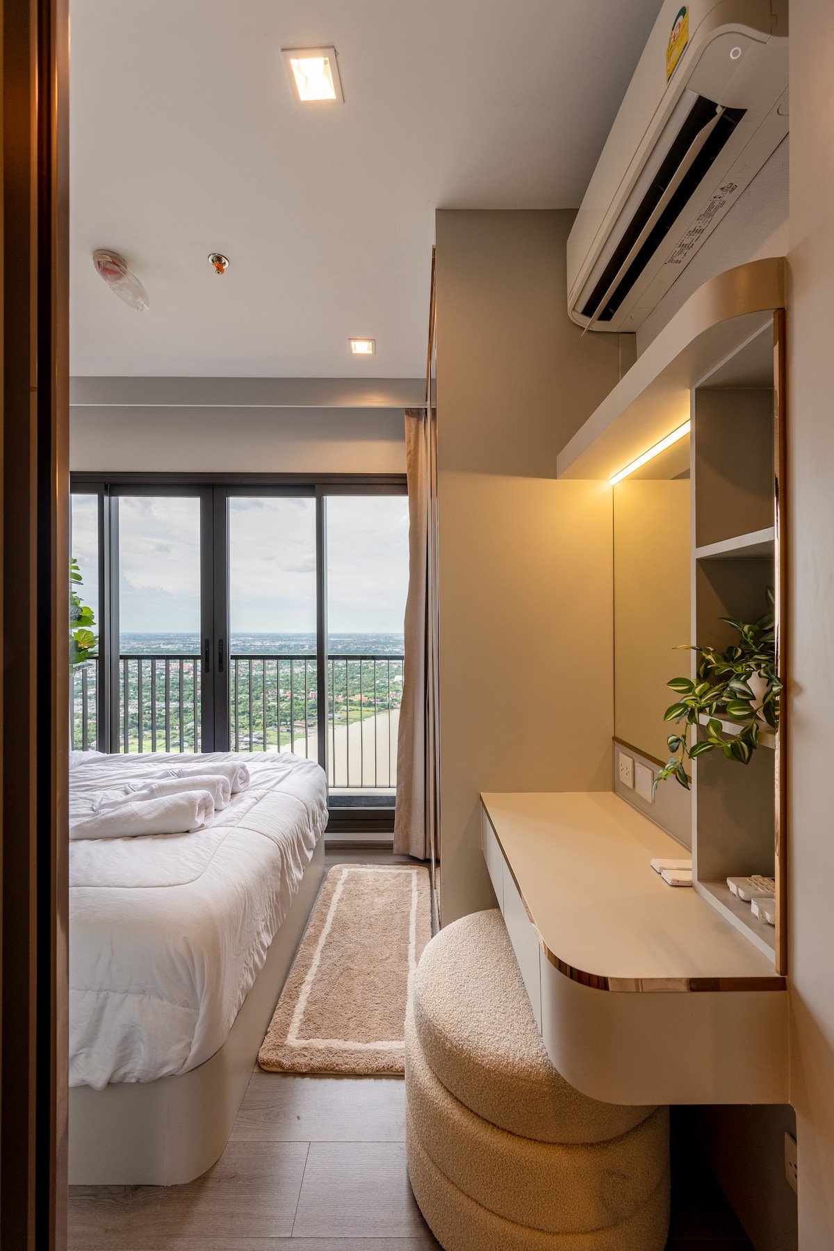 Welcome to this modern haven by the Chao Phraya River. Perched on the top floor of a high-end residence with a tropical infinity pool, this peaceful and stylish apartment offers everything you need for a relaxing stay in Bangkok. Enjoy an ultra-comfy bed, a bright living room with a Smart TV (Netflix, YouTube...), and fast Wi-Fi. The small balcony overlooks a lush tropical garden — perfect for sipping your morning coffee.