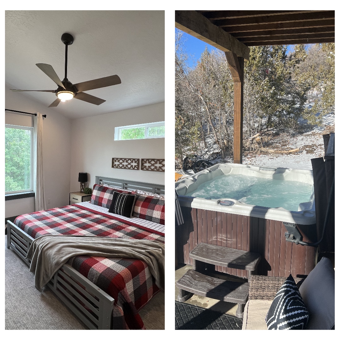 Charming yellow cottage with beautiful Manti Temple views, which is just across the street. Thoughtfully furnished with a fully equipped kitchen, washer/dryer, and comfortable, home-like touches. The main bedroom offers a queen bed, with an extra queen bed and two twin beds tucked into a cozy attic space, great for kids or extra guests. A graceful shrub archway and tall shade trees add to the home’s peaceful charm—perfect for a relaxing and memorable stay.