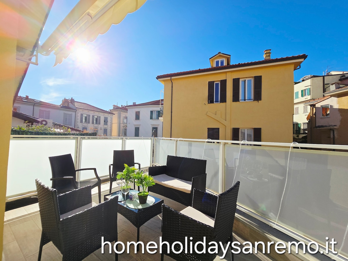 Appartamento in pieno centro ma al tempo stesso silenzioso, appena ristrutturato, con ascensore. Tutto sotto casa: parcheggio pubblico, negozi, servizi vari. Il mare è a circa 200 metri, così come il Teatro Ariston e la movida di piazza Bresca. A 1 Km la stazione ferroviaria, a 150 metri la fermata dell'autobus e i taxi. In macchina si raggiunge il campo golf in 8 minuti, mentre in 5 minuti i campi da tennis in zona Foce. Possibilità di affittare appartamento attiguo, per gruppi più numerosi.