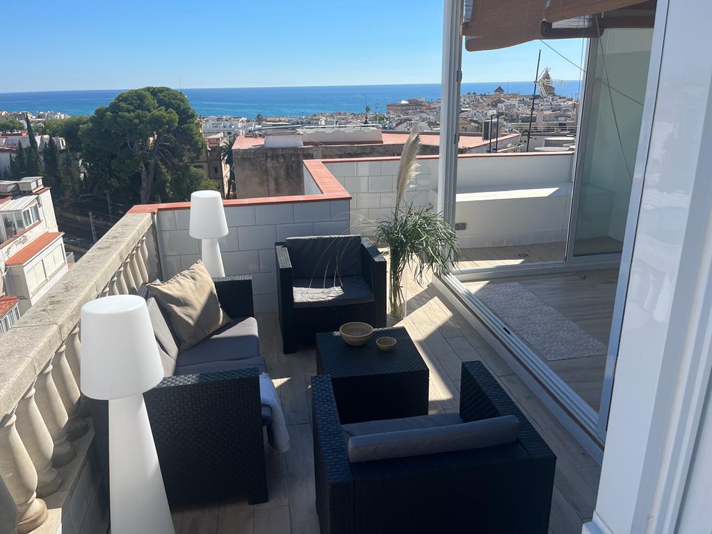 Escape to Sitges presents this stunning, refurbished Penthouse apartment is located in the heart of the Óld Town´of Sitges. Only 100 meters from the beach it has breathtaking sea, mountain and port views from the spacious, private roof terrace. Fully air-conditioned, there are two double bedrooms with en- bathrooms. The modern kitchen has everything you need to make your stay perfect. There is Wifi throughout. Flat screen smart TV, BBQ on the huge roof terrace and two outside dining areas.