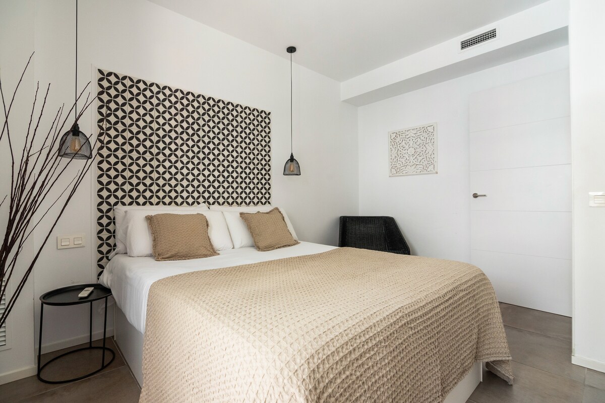 ¡Enamórate de nuevo en nuestro loft vista mar! Podrás ver el mar desde el balcón, mientras despiertas en tu cama o mientras te duchas. Decorado con esmero y con todo lo necesario para que solo os preocupéis el uno del otro. Bamblue Boutique Apartments se encuentra a 500m de la playa, con wifi de alta velocidad, smart TV con chromecast, aire acondicionado, lavavajillas,... Disfruta de tu balcón y las zones comunes: piscina, barbacoa, terraza, solarium,... Tenemos parking (€) bajo reserva previa.