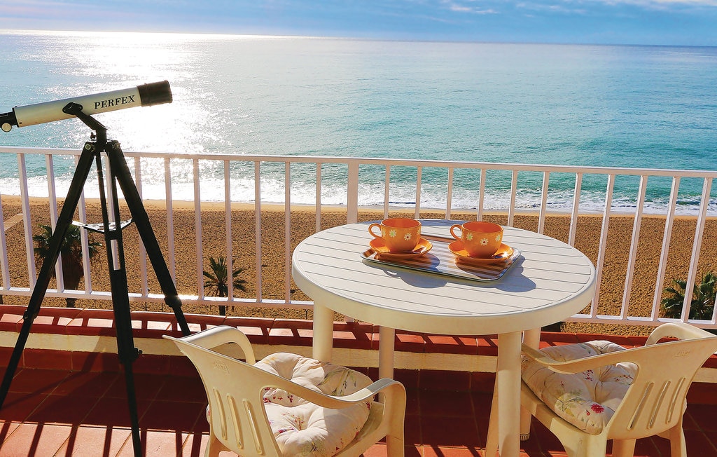 Apartamento en frentre de la playa y en el centro del pueblo, ideal para dos personas para pasar unas bonitas vacaciones junto al mar. El apartamento esta preparado para cuatro personas. Tiene wifi gratuito. Esta a 1 minuto de la estación de tren. Tienes las tiendas, bares, etc a 5 minutos. El apartamento no tiene ascensor hay que subir escaleras 5piso con un tramo final de caracol, pero vale la pena poder disfrutar de las fantasticas vistas y de la playa. Taxa turísticas 1€ por día y persona