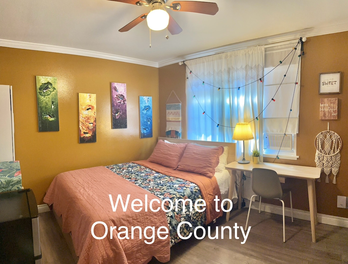 Peaceful, 220 sq ft studio in a safe, central OC neighborhood 🏡 Walk to restaurants, park, golf & pickleball 🎾. Short drive to : 15 mins to Huntington Beach 🏖 8 mins South Coast Plaza 🛍 7 mins to Phuoc Loc Tho (Asian Garden Mall) 20 mins to Disneyland 🎢 airports ✈️. (SNA 10 mins away) Plenty of free safe parking 🚗. 📍 Actual Address shared within 24 hour before check-in for safety reasons. 📷 Security cameras on the outside property for added peace of mind for our guests.