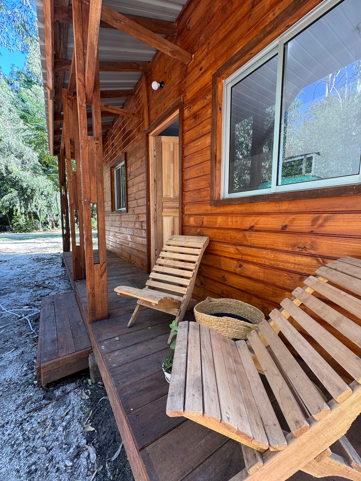 Cabaña confortable. Jardín exclusivo con parrillero, árboles y plantas. Deck al frente con gran ventanal y otro en la entrada de la cocina. Cama doble con colchón a extrenar. Baño completo con espaciosa cabina de ducha. Cocina y horno a gas, heladera con freezer, microondas, todos los utensillos necesarios. Luz natural en todos los espacios. Aire acondicionado. Muy iluminada. Está ubicada en una calle accesible a 8 cuadras de la playa con parada de omnibus cercana. Sábanas y toallas incluidas.
