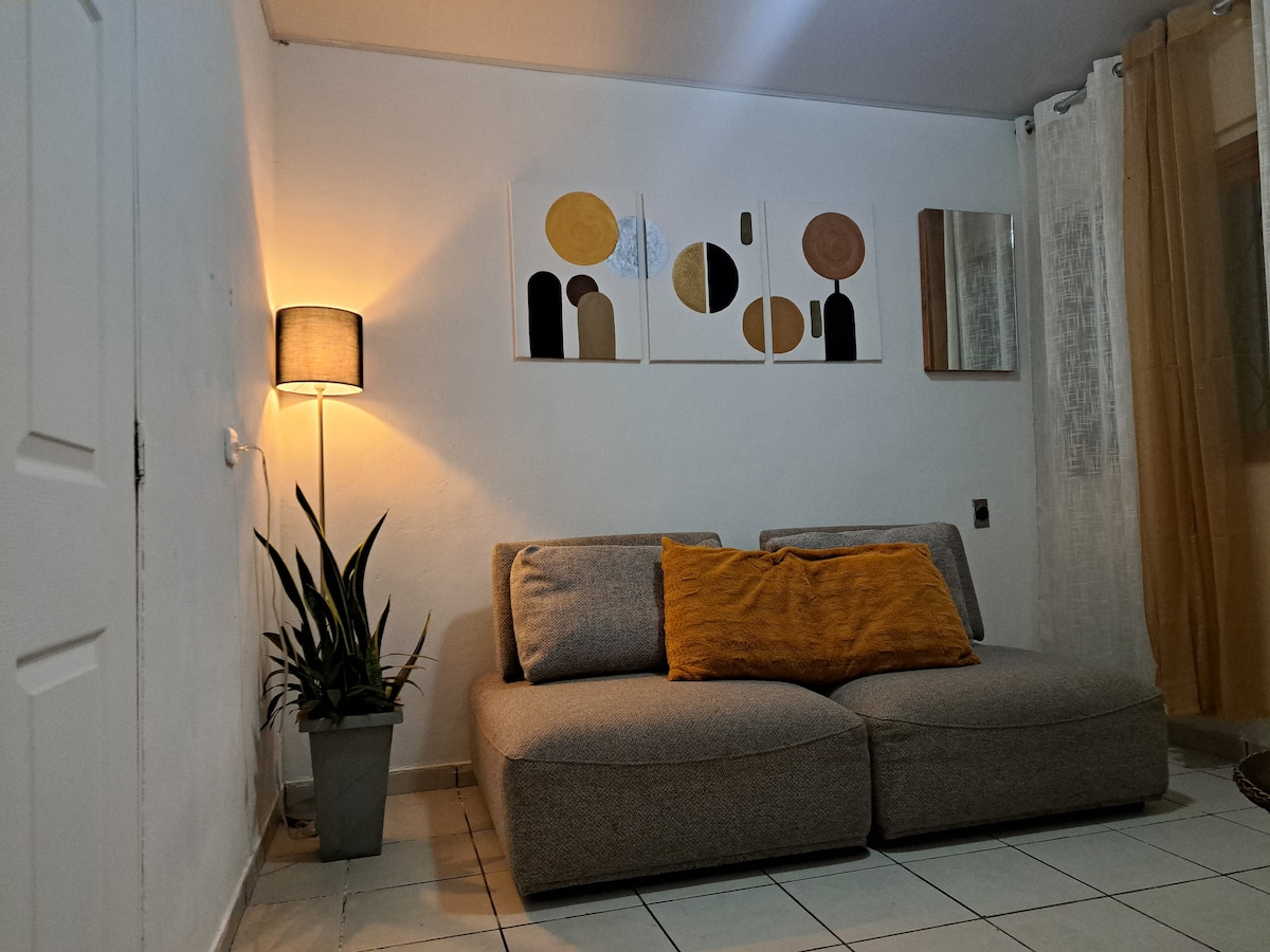 Apartamento María es moderno y acogedor, perfecto para quienes buscan comodidad, buena ubicación y un espacio para relajarse. Cuenta con aire acondicionado, una sala de cine ideal para disfrutar películas y series después de un día de actividades. Está ubicado cerca de centros comerciales, restaurantes y del corazón de Santa Ana, lo que facilita moverse por la ciudad sin complicaciones. Ideal para parejas, viajeros de descanso o trabajo que desean un lugar tranquilo, limpio y bien equipado.