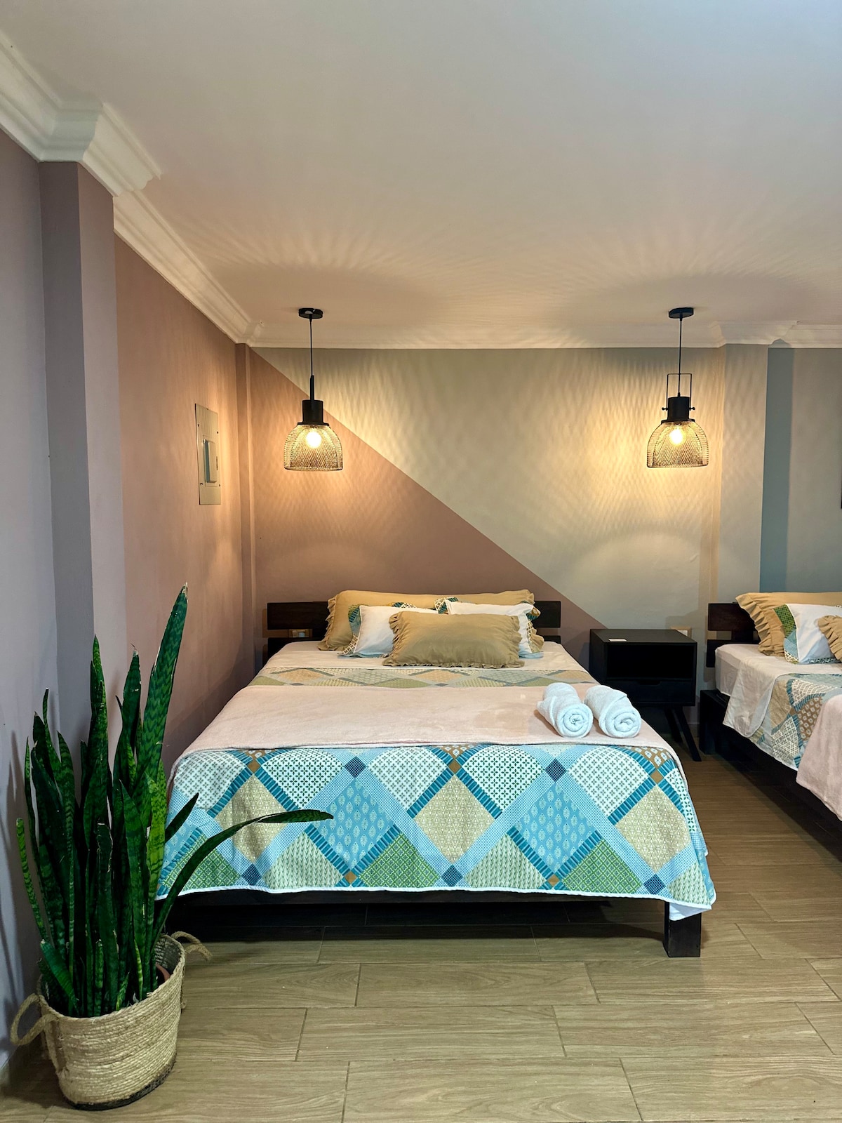 Espacio amplio y cómodo ideal para familias o grupos de 4 a 5 personas. Cuenta con dos camas dobles, un sofá cama, baño privado y ambiente fresco rodeado de naturaleza. Perfecto para descansar después de recorrer la Ruta de las Flores y disfrutar la tranquilidad de Juayua.
