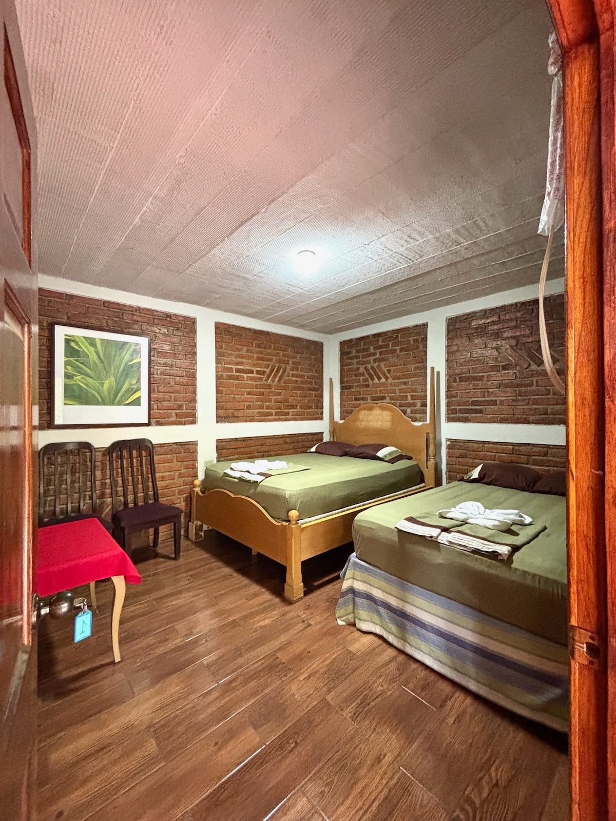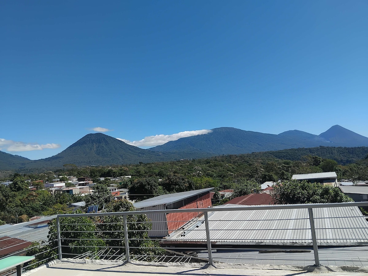 Bonita habitación de Campo para parejas en Cerro Verde, Junto al volcán de Santa Ana. La habitación incluye: - 2 desayunos 🤤🍴☕🍳 Típico o pupusas Café o chocolate - 2 sabanas calientes - 2 Toallas - Tocador con espejo - 4 mesitas de madera - Sofá cama - Terraza - Mesita de cristal, sofá y sillas - Baño privado - Ducha con agua caliente (Preguntar por funcionamiento) Estamos ubicados cerca del Volcán de Santa Ana.🌋