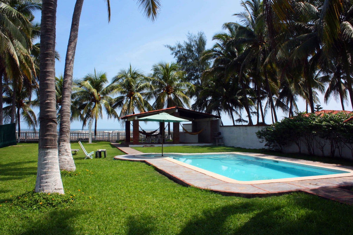 Beautiful Beach House oceanfront property. Has all the amenities from your home: Space for 10 Car Parking, Living Room, Dining Room, Kitchen (with on site guardsman), 3 bedrooms & 2 full bathrooms. All bedrooms are equipped with Air conditioning for your comfort. You have a breathtaking view of the ocean. Take a few days off and enjoy a more than deserved vacation from work in one of the most quiet beaches from El Salvador.