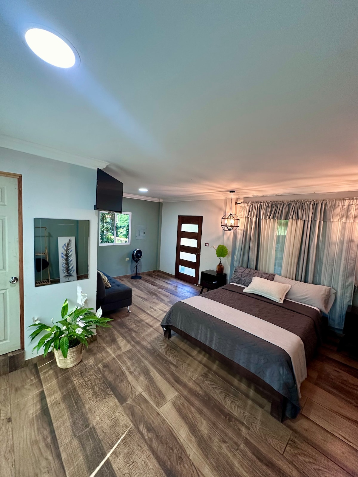 Escápate a la tranquilidad de Juayúa en la habitación doble #3 de La Villa de los Alas. Ideal para parejas, ofrece baño privado con agua caliente, TV con streaming, cocina compartida y jardín. Disfruta de parqueo privado con acceso por carretera principal, a menos de 5 minutos del parque central. ¡Comodidad, naturaleza y encanto en un solo lugar!