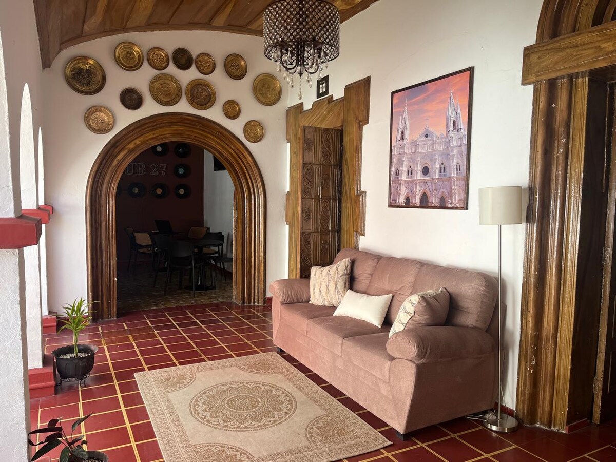 Este encantador y exclusivo lugar para quedarte, en ambiente familiar y tranquilo. puedes hacerlo con tu familia, amigos o compañeros de trabajo. contamos con pagos con tarjeta. estamos a 6 cuadras de la cátedral y a 3 cuadras del parque colon. con habitaciones con aireacondicionado, amplias, limpias y ambiente agradable.