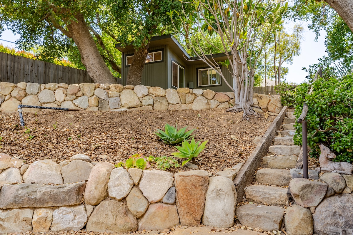 Enjoy the natural beauty of Santa Barbara minutes from beaches, attractions and wining/dining. This tiny Cottage offers a peaceful, cozy and private getaway with a lovely mountain view deck shaded by beautiful oaks. Note the Cottage is tiny, 160 sq. feet. It is simply appointed with a "cabin" feel. It is perfect for a solo traveler or cozy couple with a double (not queen) bed, mini kitchen, and tiny living room. Access requires climbing the stone steps pictured.