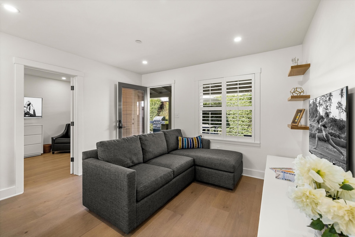 This is a totally private studio, 1 bath apartment attached to the back of my house. I’ve installed soundproofing material between the shared wall, so go crazy! Well, not too crazy ;) The apartment space is super cozy and comfortable. The bed back there is actually more comfortable than mine so I'm jealous and you're welcome. AND you have full use of the backyard, including the firepit area and hot tub.