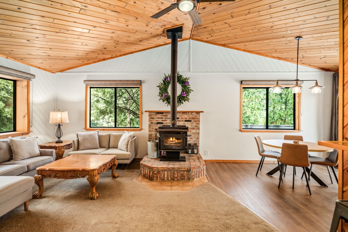 Come enjoy in this romantic mid-century designer cabin perched under the stars. Snuggle by the cosy fireplace while feeling like you are up in the stars. This one-of-a-kind architectural gem has been beautifully updated to create a perfect romantic getaway. You can also enjoy the community pool and hot tub, tennis courts, golf course, clubhouse, basketball court, volleyball court, baseball diamond, soccer field, fishing lake, equestrian center, hiking, cross country skiing, restaurants.