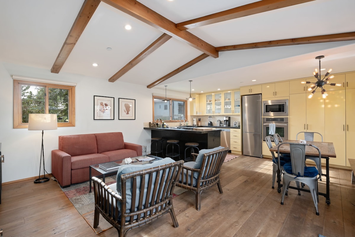 This 1 bedroom, 1 bath place has a full kitchen and the Interior Designer owner has created a unique, artistic treehouse vibe. Enjoy the balcony with a mountain view, delightful gardens, and outdoor seating area. Walk to restaurants and downtown. Free bikes and coffee/tea! EV charging available. Legal Airbnb/includes taxes. The City has started aggressively enforcing on 1,000+ illegal operators, look it up. See details at the bottom to avoid the risk of booking a place that may cancel on you!