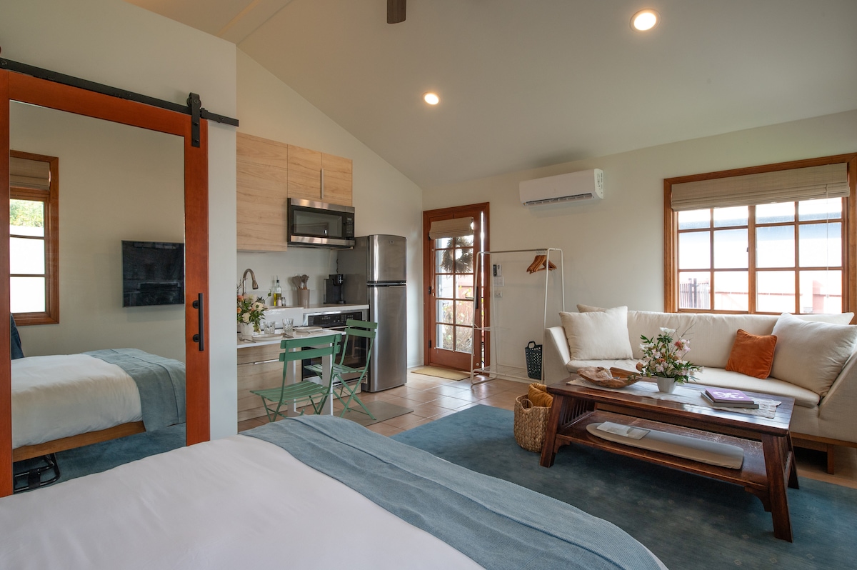 Welcome to this truly special beach cottage and come relax in the peaceful, lush garden and chill in a luxurious King bed. Walk through a quiet and adorable neighborhood to beautiful beaches, lively harbor, local markets and a variety of restaurants . This private and beautiful studio is centrally located and just blocks from local favorites. You will enjoy the ocean breeze on your private patio and with open windows. This space is ideal for one or two adults.