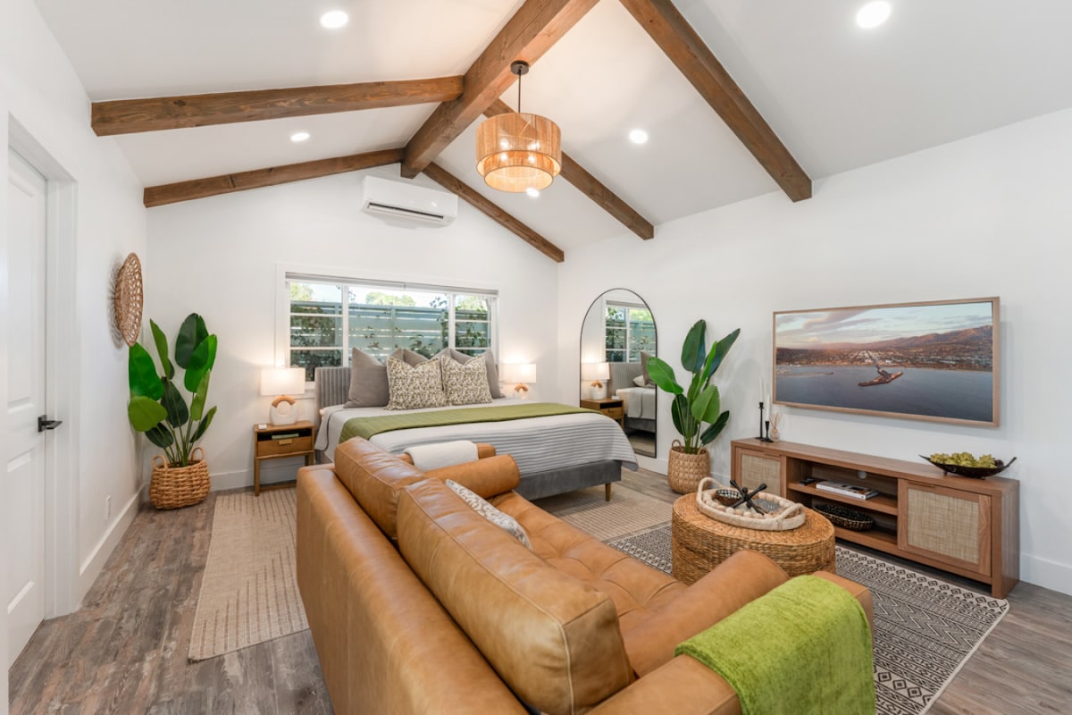 This cozy modern Spanish style studio feels like a 1 bedroom and offers a memory foam queen bed, a memory foam queen pull out couch, a full kitchen, a luxurious bathroom, and a beautiful yard with a private patio dining area. Ideal for a couple but can squeeze in up to 4 if you don't mind tight quarters! Located on Santa Barbara's bustling east side, conveniently close to the 101, it's minutes to everything - the beach, Coast Village Montecito, the Funk Zone, and downtown Santa Barbara!