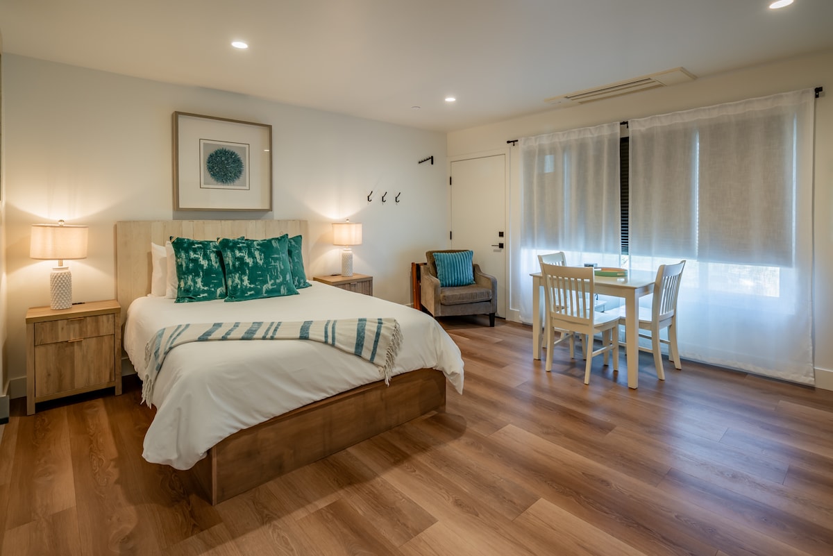 Modern beachy ambiance in a comfortable and newly renovated suite. Recently added to our listings. Located in the upper theater district, we are just three blocks away from downtown Santa Barbara, where you can find restaurants, shopping, and entertainment. Located two short miles from the beach, this suite will make a great home base during your visit. We also have other suites available with different accommodations if needed!