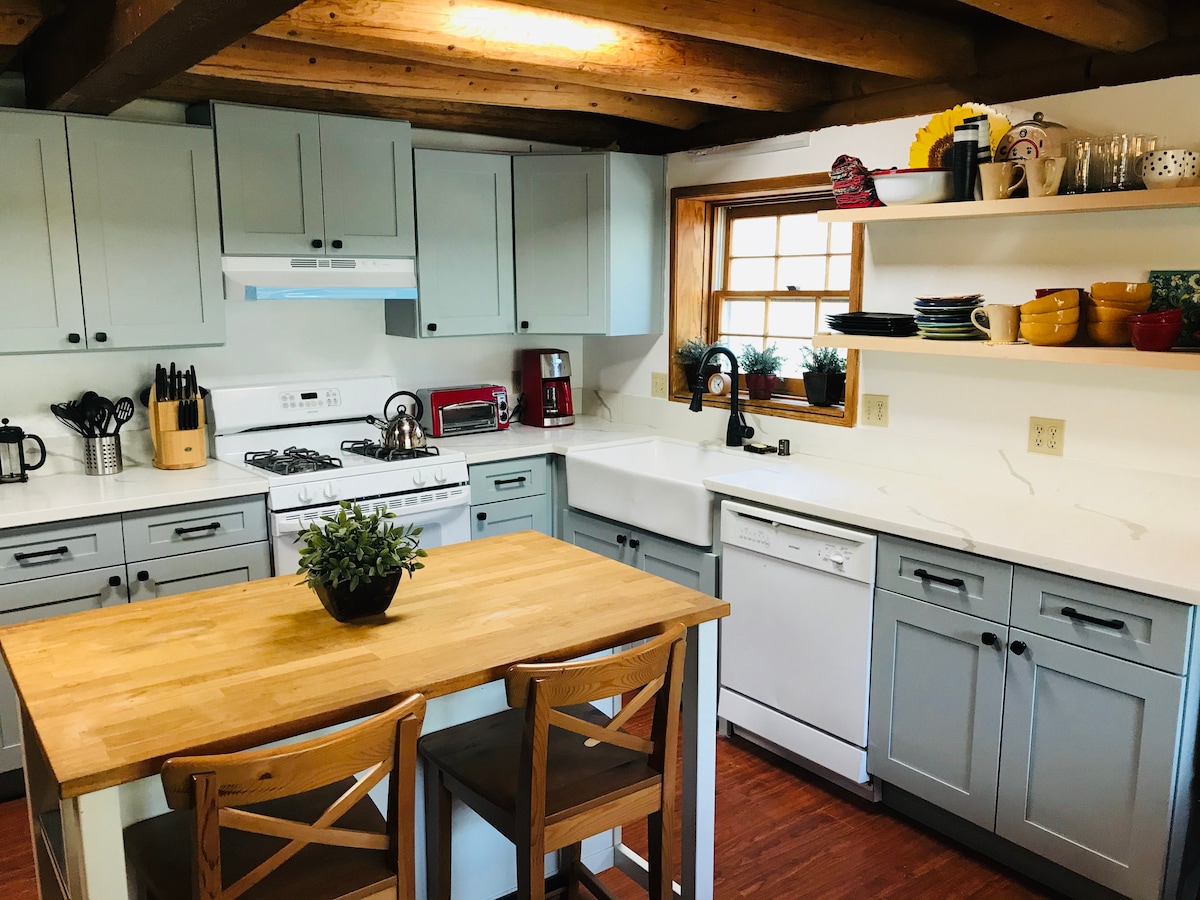 Our Cabin sweet cabin is ready for you to enjoy. StarLink Wi-Fi -Cal King bed & futon in the bedroom with smart tv, sofa bed in the living room plus another sofa bed in the den. Cabin has wood paneling & wood beams making it very rustic and cozy with views of the woods and mountains out every window. Enjoy the wrap around deck with table&chairs to take in the view. Fully equipped kitchen, dining area, breakfast bar, living room w/flat screen tv, dvd player, wood stove. Come enjoy the cabin life!