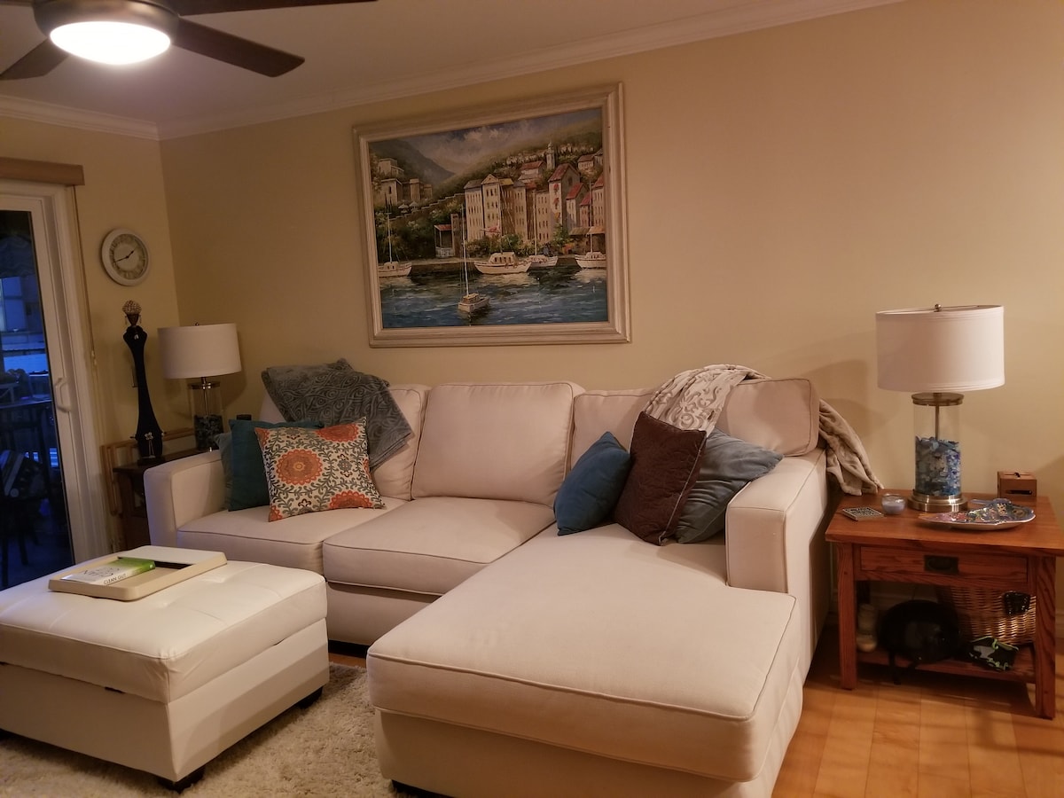 Santabarbarasbest@eastbeach (1200 sq. ft) is located in a beautiful, inviting coastal community at East Beach with 1 BLOCK walking distance to the BEACH, zoo and our beautiful Cabrillo Blvd walking/cycling/skating and running path. Montecito/Santa Barbara dining and Funk Zone are within walking distance or minutes away by car. Walk to Reunion restaurant for ocean side dining. The condo has morning sun that smiles at all rooms with warmth and lighting that empowers your day. 1 parking sp