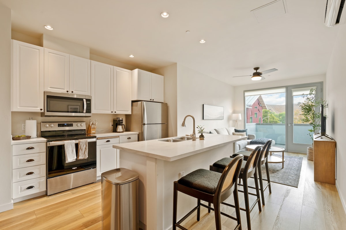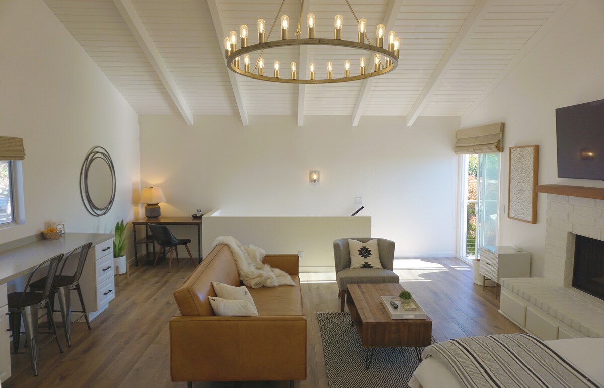 Welcome to your coastal retreat in Santa Barbara’s vibrant Mesa neighborhood! Step into our stylish ~590 sf studio loft, where soaring ceilings and modern decor greet you. Soak in ocean views from the balcony or relax beside the fireplace. Sleep blissfully in a King bed with luxury bedding and blackout shades. Enjoy the convenience of a well-equipped kitchen, modern bathroom, and dedicated office space. Walk to restaurants, shops, beaches, and trails. This is beach living at it's best.