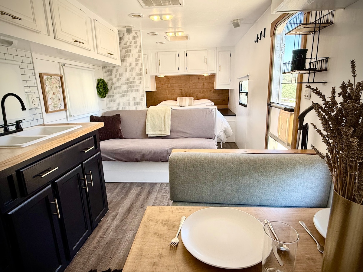 Come stay in the heart of the Goodland in our private, cozy, luxury camper with a full sized queen bed with a new mattress and 2 bunked twin beds, a full kitchenette and plenty of space to work or dine. We are ready to host couples, solo adventurers or UCSB student/parents/visitors! With a private outdoor space, lawn chairs and a BBQ grill you can enjoy the shaded outdoors or catch the breathtaking sunsets while gazing at the stunning mountain views while enjoying a home cooked meal.