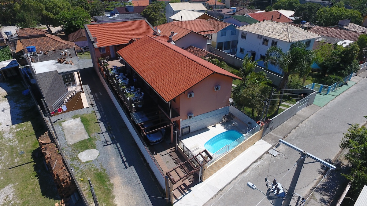Apartamento charmoso e completo para desfrutar o melhor que Florianópolis tem para oferecer. Apartamento de um dormitório com wi-fi e ar condicionado, banheiro privativo e sala com mini cozinha (cooktop 2 bocas e frigobar). Temos amplo pátio fechado para desfrutar, além de estarmos a 350 metros da praia e do centro comercial do bairro. Fornecemos roupa de cama e de banho, além de utensílios para cozinha (panelas, pratos, copos, xícaras e talheres). Não aceitamos pets.