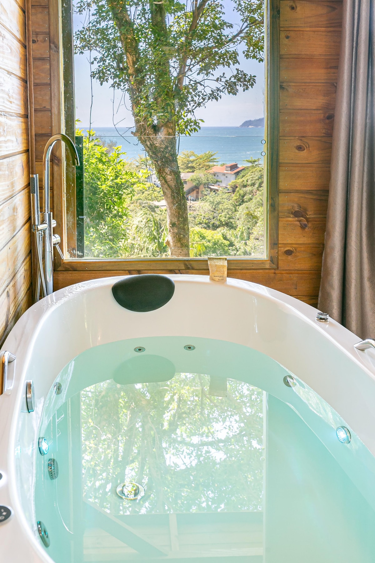 Cabana charmosa no alto da mata, com vista panorâmica para o mar, banheira de hidromassagem, internet fibra e total integração à natureza. Última casa de um pequeno condomínio, com muita privacidade, silêncio e acesso por trilha curta. Um refúgio perfeito para relaxar, contemplar e se reconectar.