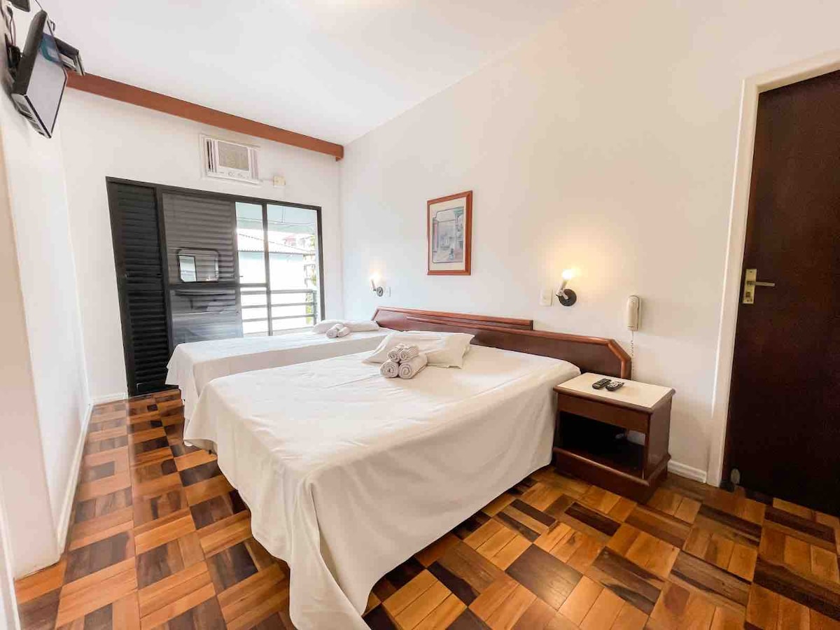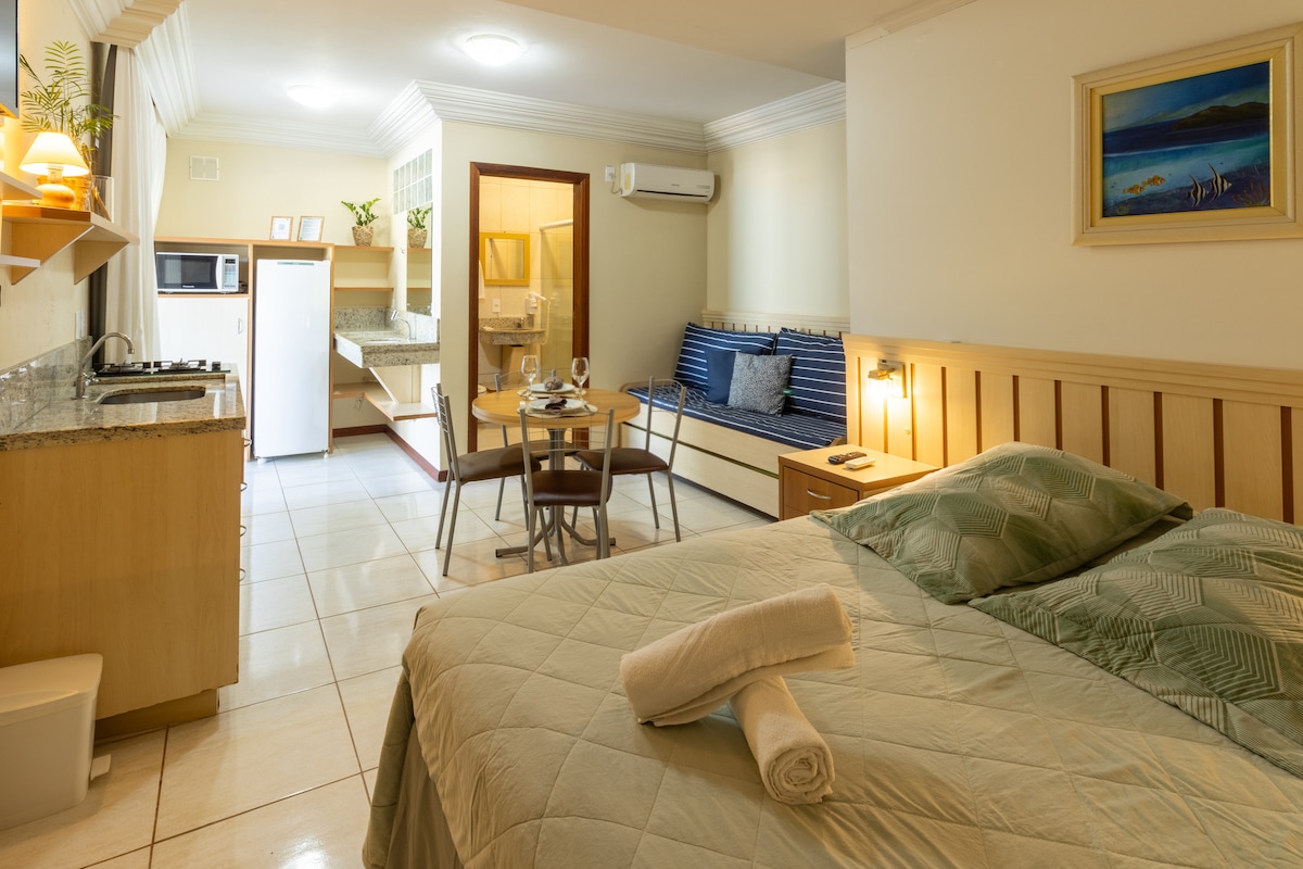 Tudo o que você quer explorar está a um passo deste lugar. Apartamento tipo hotel com banheiro privativo, TV, Ar condicionado e frigobar. - Check-in após as 15 horas - Check-out as 11 horas; - Diárias NÃO inclui café da manhã; - Proibido animais de estimação - Apartamento tipo hotel para 2 pessoas; - Recepção 24h para check in e check out; - Estacionamento NÃO está incluso na diária.