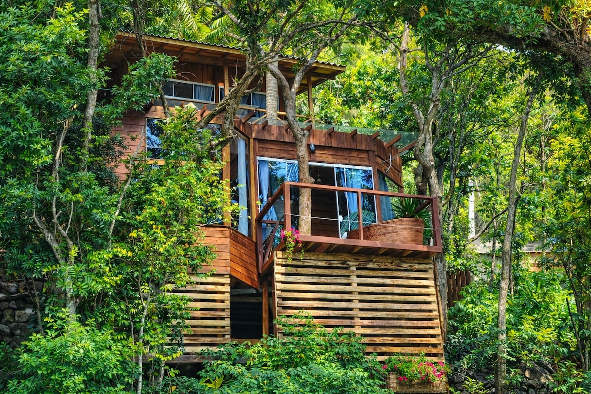 Observatório natural no alto da montanha com uma arquitetura em simbiose com a natureza. Visual deslumbrante para a Lagoa e o Mar, com nascer do sol e da lua. Fogueira para ver as estrelas. Conforto com requinte e privacidade. Rodeada pela mata atlântica, águas da cachoeira, piscina natural com água da nascente. Acesso somente via barco (Lindo trajeto pelas águas da Lagoa-ca.15 min.) ou via trilha. Check in presencial. Um paraíso espera por você!
