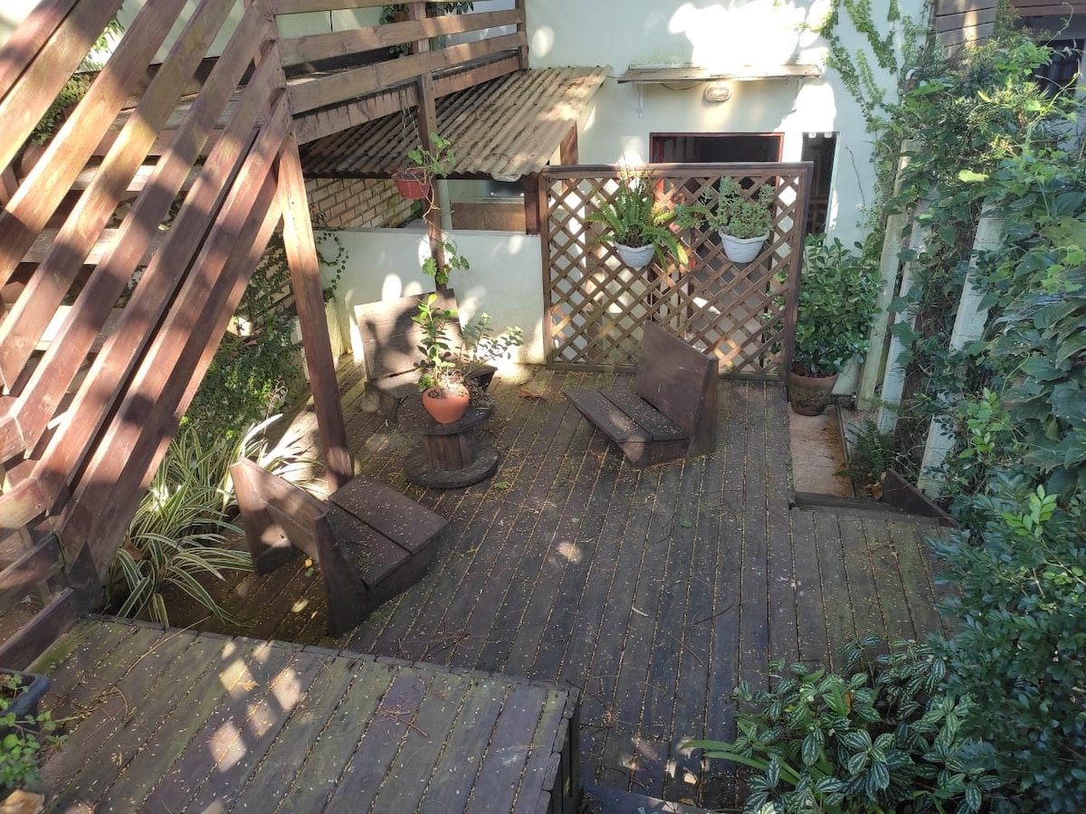 Essa acomodação fica no andar superior e é decorada com muito carinho e cuidado, e cada detalhe foi pensado para deixar sua estadia mais gostosa. É um espaço perfeito para quem está procurando um cantinho para curtir em meio à natureza e próximo ao mar. Possui janelas amplas, com deck em frente que dá vista parcial do mar e das montanhas. Disponibilizamos cadeiras de praia, guarda sol e saca areia, além de toalhas para uso na praia.