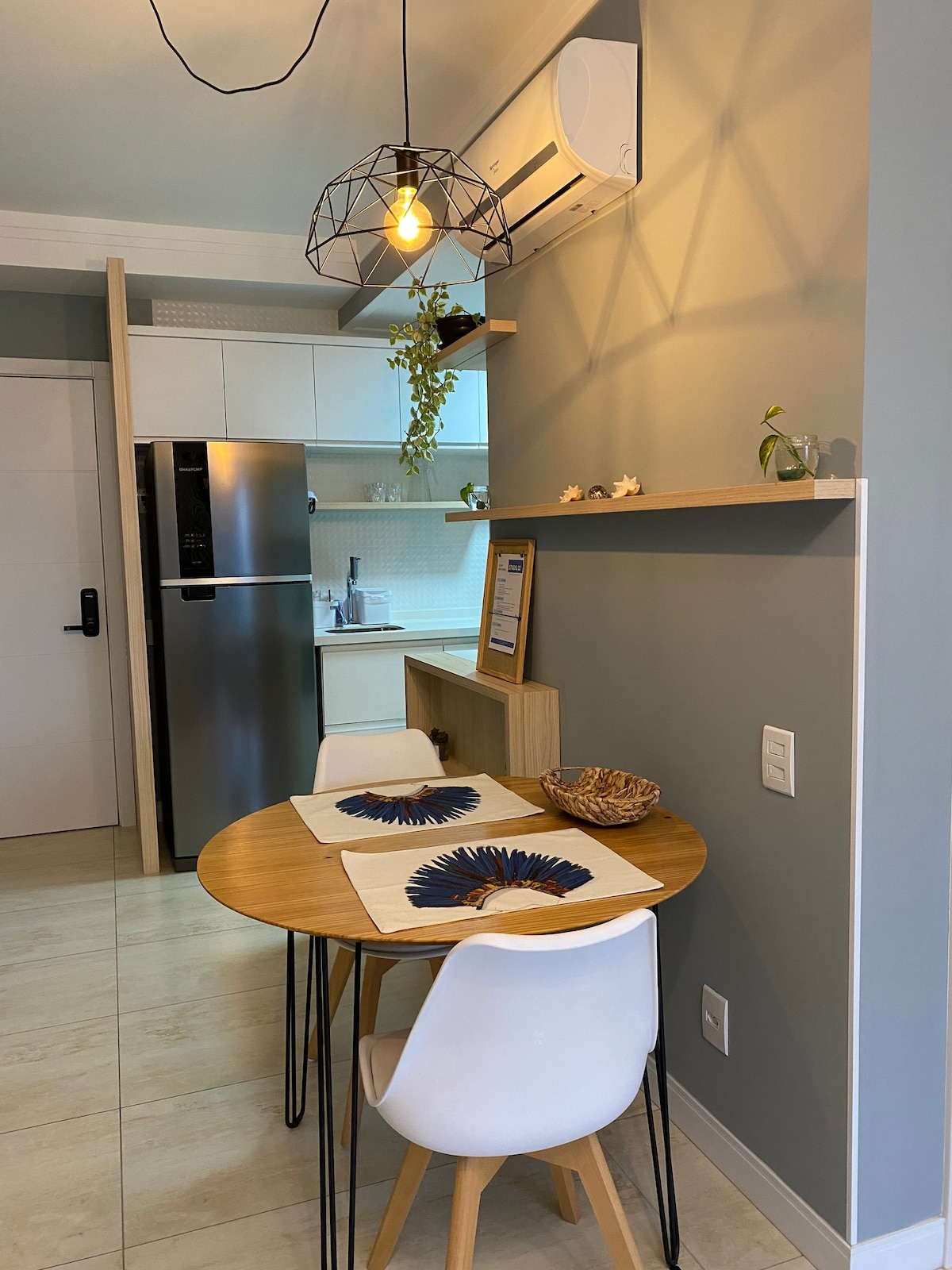 Looking for a cozy checkpoint in the heart of the city? You'll feel at home in this well-planned loft. Located in downtown Florianopolis, it's perfect for someone looking to explore the island or attend to an event nearby. Includes: - Queen bed - Complete gourmet kitchen - Washer and drier - Big table for meals and Home Office - 360 Rotational TV so you can watch from anywhere in the loft - Clean and modern bathroom - Wi-fi - Complete air conditioning