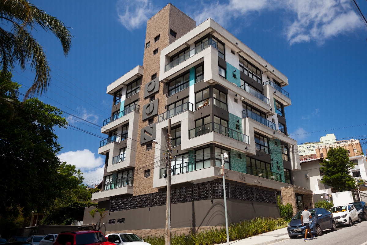 Studio novo! Projeto arquitetônico com design confortável e funcional. Internet estável e poderosa, perfeito para trabalhar e se divertir no mesmo lugar, a 400m do mar. Móveis planejados, eletrodomésticos novos, pensados para sua economia a praticidade, ar condicionado, água quente em todas as torneiras, lavadora-secadora, TV 43 polegadas, cafeteira dolce gusto ClaroTV, Disney e Netflix . Predio familiar, calmo, c. piscina e garagem. A lazer ou a trabalho sua estadia perfeita em Florianópolis.