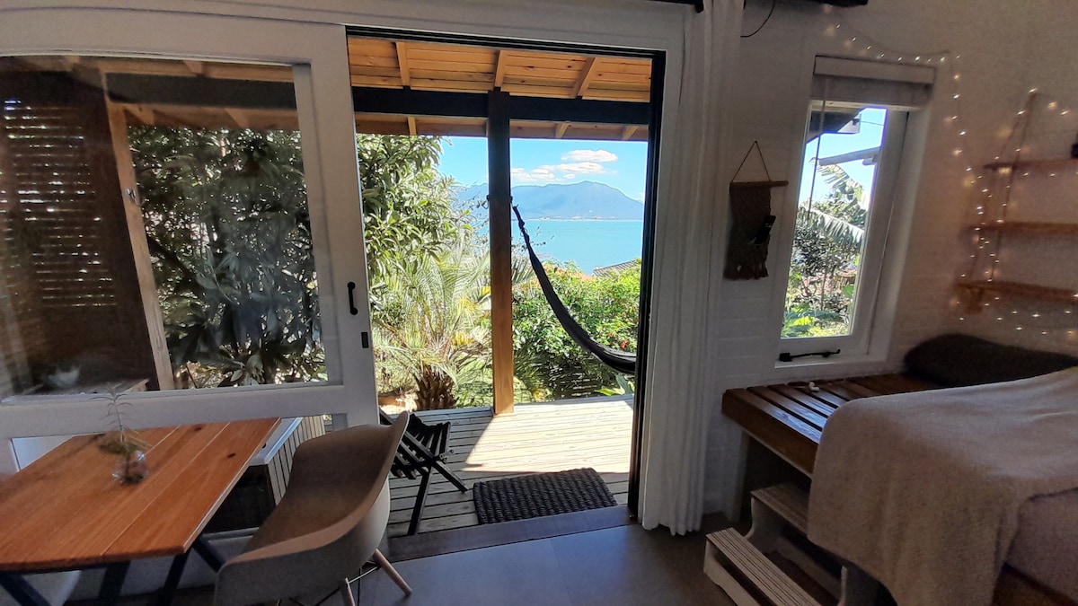 Chalezinho exclusivo para duas pessoas em Florianópolis. Tudo novinho. Lavadora de roupa. Cama de queen Churrasqueira exclusiva. Vista de frente para o mar e para montanha. TV nanocell 50 polegadas com Netflix. Internet por fibra ótica 400 megas. Dois ar condicionado quente e frio. Escrivaninha para notebook. Mini cozinha completa. Estacionamento seguro. Pertinho da rota gastronômica. Fornecemos roupa de cama e banho. Sem taxa pet. cercadinho para pet.