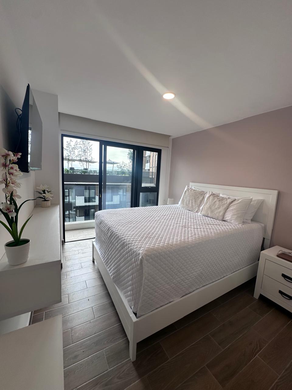 ★NO AIRBNB SERVICE FEE!!★ Exclusive benefit for our guests! El apartamento es totalmente nuevo y muy luminoso. Está amueblado, tiene un baño completo y la cocina está totalmente equipada con todos los utensilios necesarios. Puedes hacer uso de la piscina, gym y espacio de coworking que se encuentra dentro del edificio durante los horarios y conforme a las reglas del complejo. El cuarto cuenta con una cama Queen y TV con cable local y Netflix. Cuenta con estacionamiento dentro del edificio.