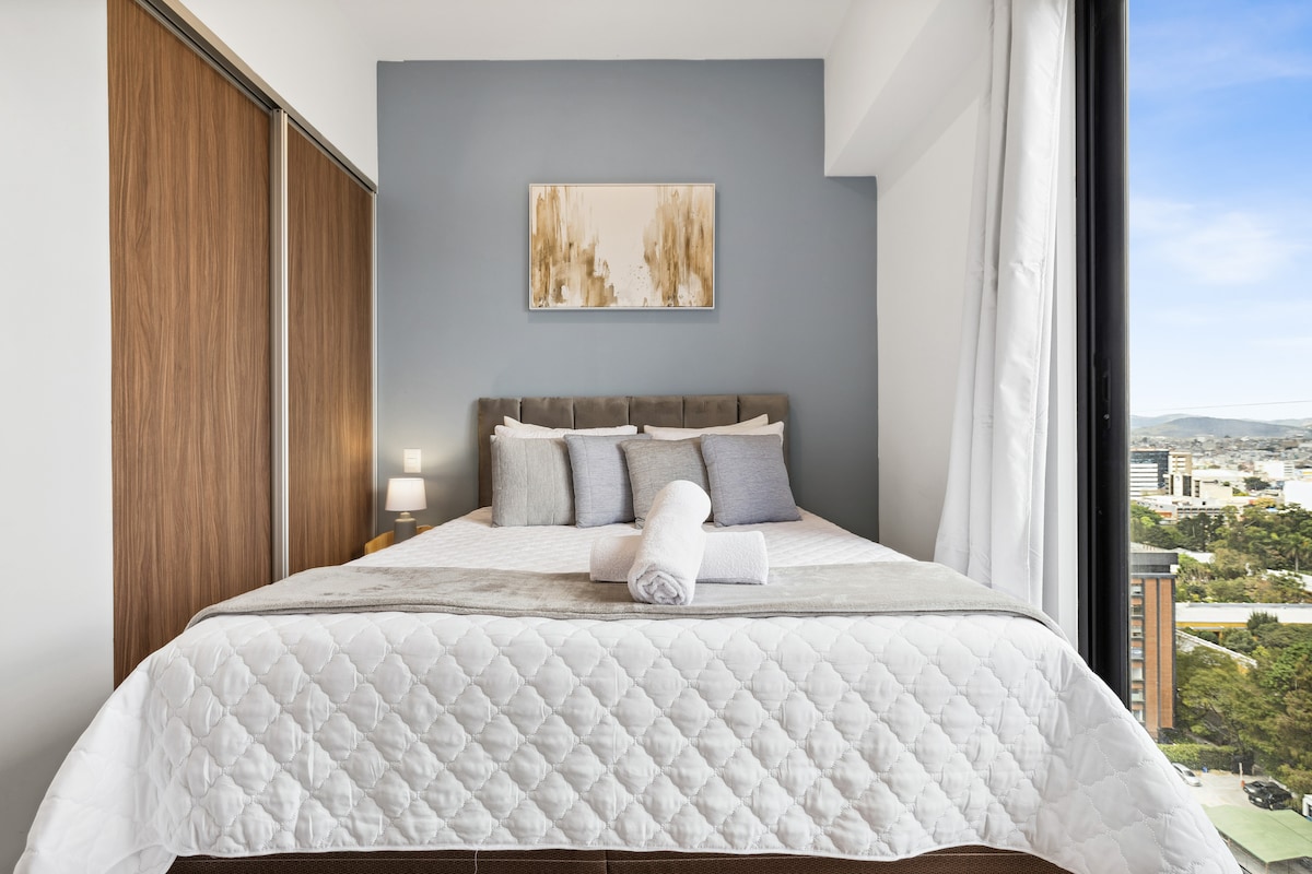 Vive la mejor estadía en el corazón de Zona 10 en un apartamento exclusivo y lujoso en Torre Airali, en la calle de las jacarandás, complementamente equipado, nuevo y a solo 300 mts de Oakland Place. Contamos con cafés, supermercados, restaurantes y los centros comerciales más importante de la ciudad a pocos metros. Disfruta de las amenidades que incluyen piscina climatizada, gimnasio, moderno Baby gym y área de coworking, entre otros.