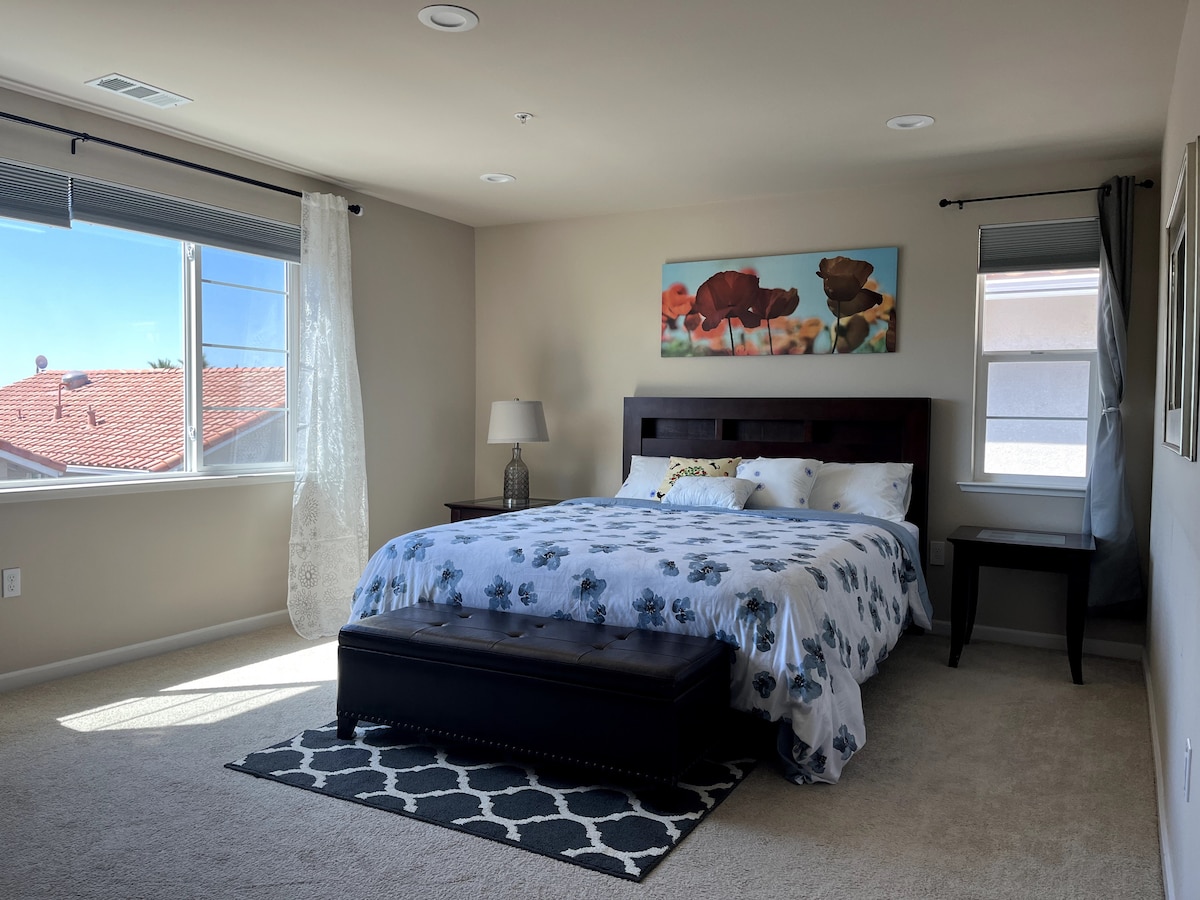 All the amenities for a comfortable stay in Silicon Valley, including 500mbps Wi-Fi & a 4k TV with AirPlay & ChromeCast Cute primary bedroom with private entrance & bathroom, completely closed off from the rest of the house, including a SEPARATE HEATING / AC system - 1 mile to Bowers Park, restaurants, coffeeshops, Target - 7m to SJC, CalTrain, Levi’s Stadium - 10m to Santana Row, SAP Center 7.6kW EV charging may be available for a fee. Please enquire *Please be mindful of noise levels*